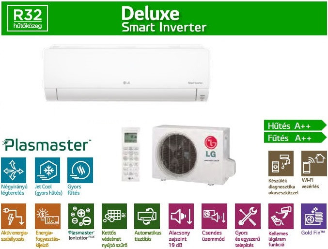 A LG DC12RK Deluxe Wifi Smart Inverter Split klíma fontos tulajdonságai: