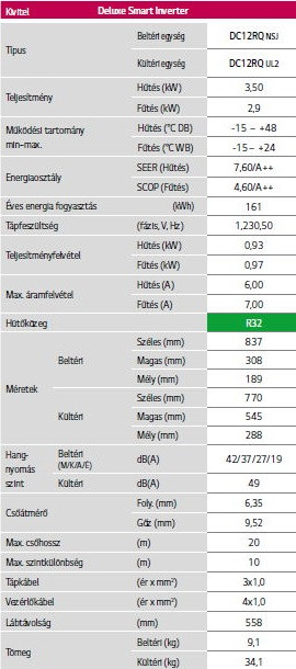 • Hűtő teljesítmény : 3,5 kW